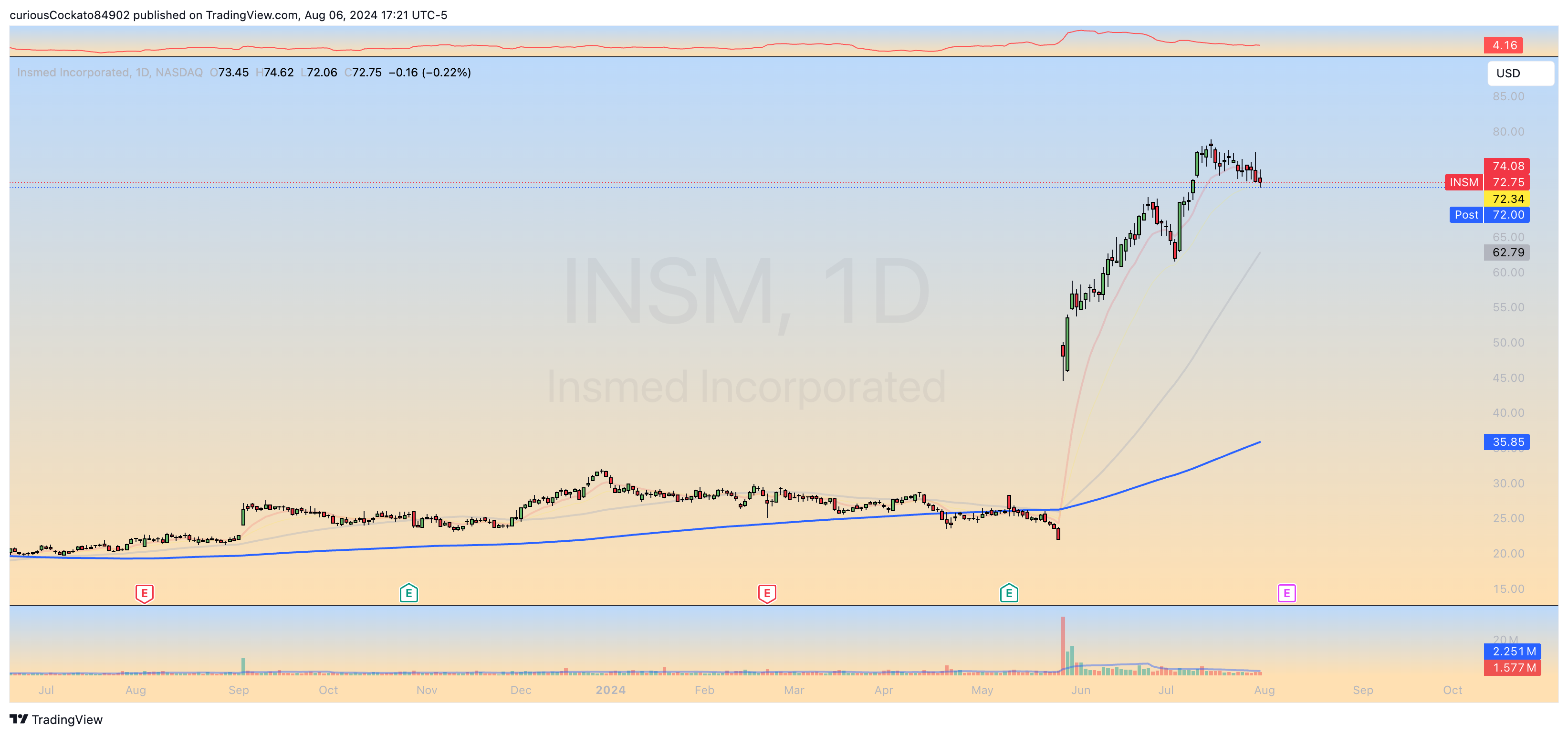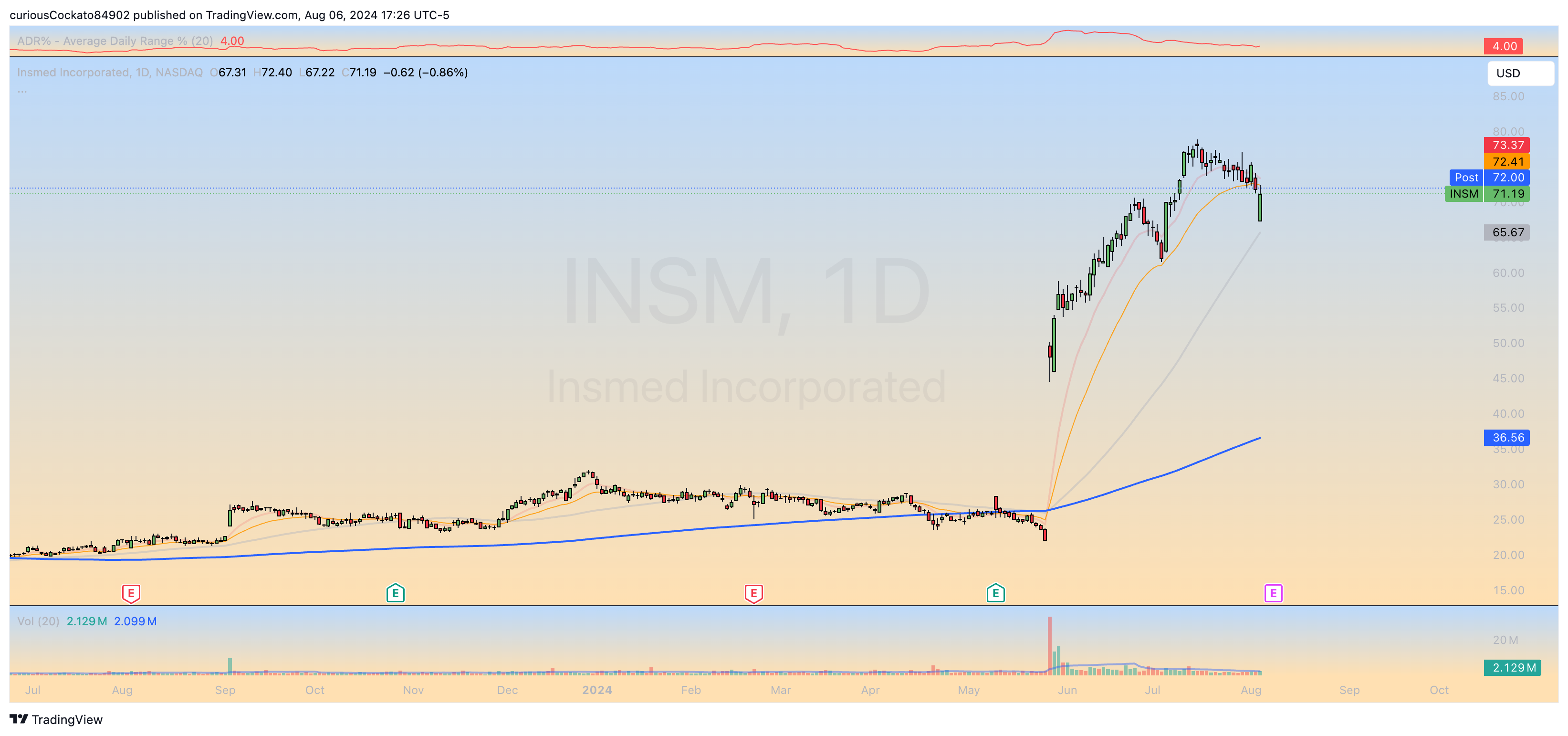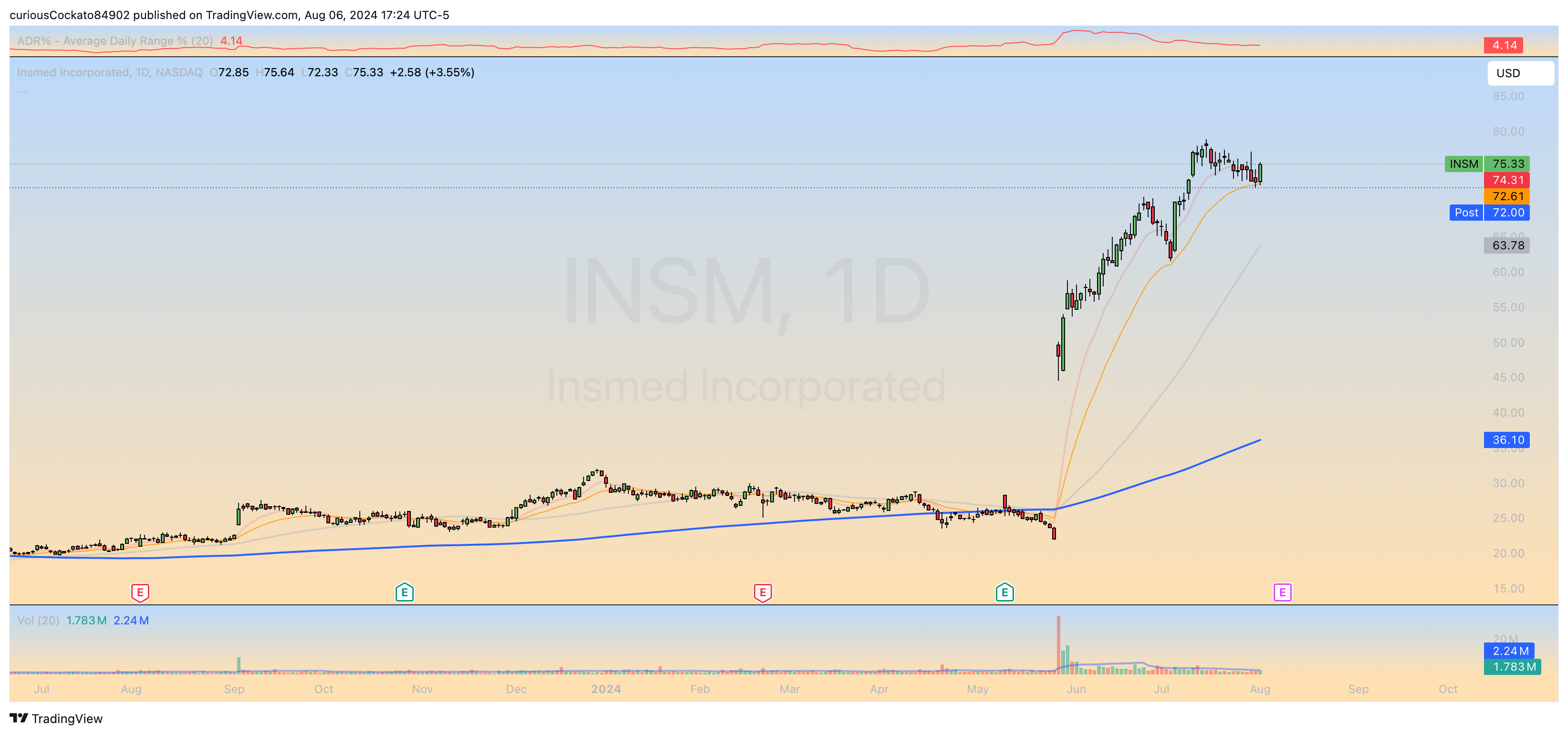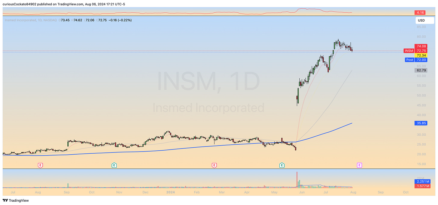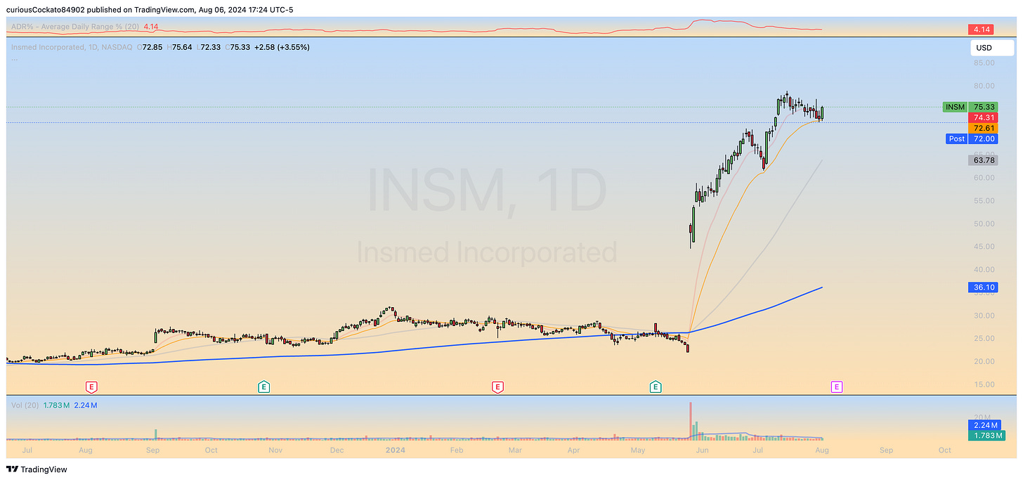 My 2nd trade was in INSM. Setup was a simple bull flag into the 21 EMA.